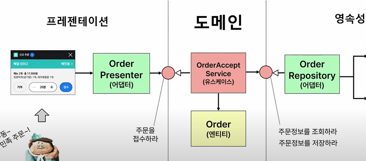 - 어댑터를 갈아 끼우기 쉬워야 하므로 비즈니스 로직과 어댑터를 물리적으로 독립시켜야 한다 (관련 리뷰)