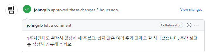 한 주의 마지막 PR을 날리고 마지막 리뷰를 받은 후, 이 화면을 보면서 30분 동안 멍때렸었다.