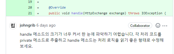 이뿐만이 아니었다. 리뷰를 계속해서 읽어 내려가다 보니, 인지하고 있었지만 “구현 먼저 빠르게 하고 리팩토링하자”라고 넘어갔던 부분들을 제외하고도 미처 생각하지 못한 것들을 아주 많이 찾아주셨다.